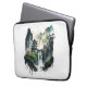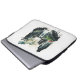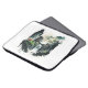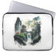 Een mooie laptophoes met een inktafbeelding van een landschap met een oude Chinese architectuur en een grote waterval.