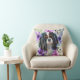 Kussen van Floral-hondenkunst met 'Anemone'-driehoekige inktaarten, spaniel in paarse, roze en groene kleuren.