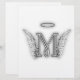 Met de letters M-angel-alfabet vleugels met halo in zwart-wit kunt u de achtergrondkleur wijzigen of uw eigen afbeeldingen toevoegen, rond de letter bewegen, enzovoort. Ontworpen door: AmelianAngels.com