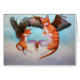 Twee tafelengelen met hawk vleugels spelen achteraan met een muis door de wolken.