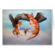 Twee tafelengelen met hawk vleugels spelen achteraan met een muis door de wolken.