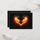 Engel vuurhart met vlammende vleugels op zwarte achtergrond.