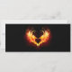 Engel vuurhart met vlammende vleugels op zwarte achtergrond.