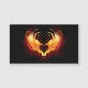 Engel vuurhart met vlammende vleugels op zwarte achtergrond.