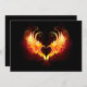 Engel vuurhart met vlammende vleugels op zwarte achtergrond.