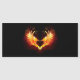 Engel vuurhart met vlammende vleugels op zwarte achtergrond.