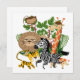 Het ontwerp van de Safari van het dier kenmerkt oerwoud planten met een leeuw, een zebra, een tijger, een giraffe, en een aap! Safari-design T-shirts, bodypakken, bibs, mokken, kaarten, stickers, wandklokken, kussens, keepskoeken, sleeves, hoesjes en nog veel meer!