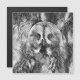 Grafisch portret van een grote grijze uil in zwart-wit