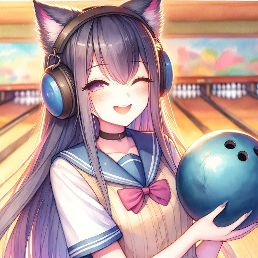 Anime thema verjaardagscadeau. Schattige anime meisje dragen hoofdtelefoon met kattenoren met een bowlingbal. Schattige roze en blauw bowling meisje verjaardagsfeest thema voor gamer meisjes of muziekliefhebbers of degenen die houden van het harige thema.