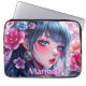 anime meisje met blauwe ogen gepersonaliseerd laptop sleeve