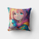 Mooi Anime meisje met twee verschillende gekleurde ogen met een schattige puppy. Leuke en kleurrijke kinder AI art. genereert inhoud
