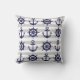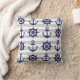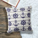 Dit decoratieve ontwerp heeft zowel een donkerblauw anker als een bootwiel met grijze en witte strepen. De nautische illustratie creëer een moderne en unieke werpkussen met gepersonaliseerde achtergrondkleur.