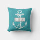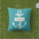 anker en lijst met jouw naam blauwgroen omkeerbare buitenkussen. Het kenmerkt een wit anker op blauwgroen blauw en jouw naam in een lijst. De achterkant is gemaakt van een blauwgroen en wit gestreepte patroon.