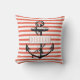 Zwart anker op koraal en witte strepen nautisch zomerkussen. De focus van dit trendy nautische ontwerp ligt op het anker en jouw naam op een wit lijst. Als u wilt kunt u naam, lijst of anker verwijderen om alleen een gestreept kussen te hebben.