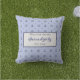 Deze nautische kussen heeft een patroon van schepenwielen, ankers en stippen, tegen een middelblauwe achtergrond. Een grote rechthoek omlijnd met donkergrijs/blauw geeft je de perfecte plek om het te monogrammeren met de naam van je boot en datum van oprichting. Het zou een klassieke look zijn voor je boot, huis bij het strand of je zomerhuis. De achterkant is effen middelblauw.