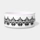 Een elegant damast patroon in zwart-wit op een kom hondenvoer. Voeg de naam van je hond toe.