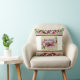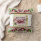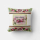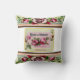 antiek kussen van het franse roos in tinten van zachte groene tinten, blauwe plekken en knuppels die tegen een witte achtergrond zijn bedekt met chocoladebruin. Het centrale afbeelding is een adverteren etiket voor parfum en cosmetica. Ideaal om een franse landstijl toe te voegen aan uw thuisdecor.