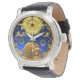 ANTIEK TIJD, zon, maan en sterren, blauw goudgeel Horloge
