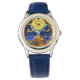 ANTIEK TIJD, zon, maan en sterren, blauw goudgeel Horloge