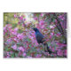 Prachtige blauwe en zwarte grackle doortrokken op een tak in een mooie roze krab appelbloesem in volle bloei. Een mooi cadeau voor jezelf of iemand speciaal!