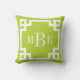 Cute girly preppy modern gooit kussen met een geometrische Griekse hoofdgrens en preppy 3 letter monogram. Klik aanpassen het om tekstdoopvonten en kleuren in creëer uw eigen één van een soortontwerp te veranderen. Schattige en unieke cadeautjes!