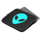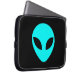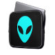 Alien hoofd vorm in heldere cyaan aqua tegen zwart.