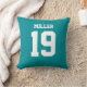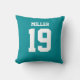 Add a name and number(s) to personalize this custom double-sided aqua and white sports jersey inspired accent pillow. It is an excellent gift for a sports fan or athlete. The options to change the color and font sizes are available.