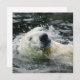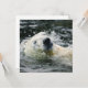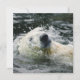 Een solitair polair beer zwemt sierlijk door ijzig water, zijn majestueuze witte kop breekt het oppervlak met alleen druppels water die in de frisse lucht zweven.