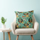 Aqua, Black, Gold Atomic-Planten | Midden-eeuw Kussen