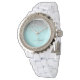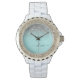Aqua Blauwe Teal Zilveren Glitter Monogram Horloge