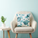 Een blauwgroen blauw en wit gooien kussen met een botanisch floreel gedigitaliseerd en kleurtoon voor deze gooiende kussen.