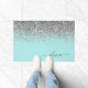 Aqua Blue - Blauwgroen Silver Glitter Monogram Deurmat