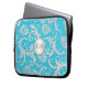 Aqua Blue en Silver Damask-laptophoes Laptop Sleeve