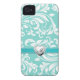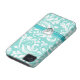 Aqua Blue en White Damask Pattern met Monogram Case-Mate iPhone Case