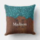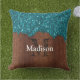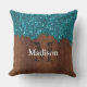 Aqua blauw schittert rustiek hout Monogram Outdoor Kussen. Personaliseer sprankelend kussenkussen met uw initiaal en naam. Aqua blauw fonkelt gebroken rustiek bruin hout. Elegante faux sparkly aqua blauw schittert met gebroken rustiek bruin stuk hout erover. *Foto van Sparkles Glitter!