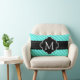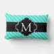 Aqua Blue Stripes Patroon Zwart Custom Monogram Kussen