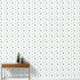Aqua Blue Yellow Franciscan Starburst Mid Century Behang