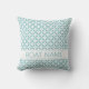 Aqua Boat Pillow. Aqua en White geometric patroonontwerp accentkussens voor buitenzitplaatsen, patio en dek. Aqua Boat Name kussen met een traditioneel Japans SHIPPO-patroon en een moderne minimale typografie. Het elegante decor belichaamt vermogen, concentratie en de interactie van verschillende elementen. #ybeedesign #ybeesea #aquaboatnamepillow #aquanauticalpillow #aquapillow Patio-dek ter versiering van ideeën gemaakt van oceaanliefde © Design y.BEE ZEE
