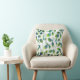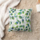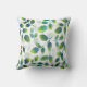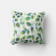 Kussen bedrukt met abstract bladpatroon in aquablauw, groen en wit, van originele waterverf schilderij.
