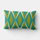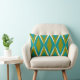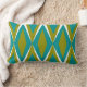 Een geweldige retro-print met een gewaagd diamant geometrisch design in tonnen turkooisblauw en erwten groen, om je moderne stijl uit de middeleeuwse tijd naar je decor te brengen.