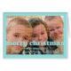 Slank en modern Typografie Merry Kerstfoto Wenskaart met een eenvoudige en trendy tekstomhulling in turquoise en fotosjabloon. Eenvoudig aan te passen, voeg uw eigen foto en persoonlijke vakantiegroet toe. Klik op "Aanpassen" om aanvullende aanpassingsopties te vinden.