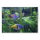 Blauwgele en blauwrode vis zwemt in de groene zeewier.