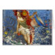 Een mooie vrouw die speelt in het zee - Een leuk zee-zeemeermini is een kunstcollage met antiek afbeeldingen van een mooie vrouw, een octopus, een theepot, en de oceaan. Aquarius is het thema.