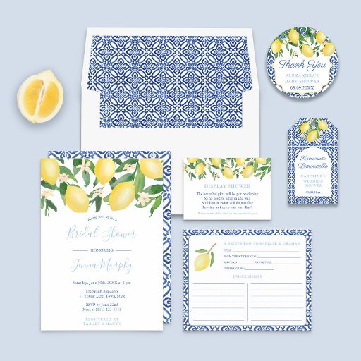 Arch Shape Italiaans Lemons Blue Tegel Vrijgezelle Servet