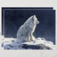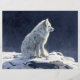 Een mooie witte poolvos zittend in een besneeuwd wonderland, een serene scène vastgelegd in een olieverfschilderij op een pittoresk plakboekpapier. Perfect om te verzamelen als kunstwerk of te integreren in uw ambachten zoals scrapbooking.