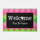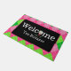 Verhoog uw entree met onze betoverende roze en groene argyle design gepersonaliseerde welkomstmat, met een leuke golfbal op een blauw t-shirt ter vervanging van de O in Welcome. Verkleed je entree met een welkomstmat met golfthema. Het perfecte cadeau voor de fanatieke golfer, of 19e hole golfbaan clubhuis.