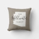 Moderne boerderij gooit kussen gepersonaliseerd met je familienaam op je staatskaart. Faux burlap canvas texture background (let er op dat kussentjes niet van materiaal zijn gemaakt om de schoot te leggen). Klik de Customize knoop van het om uw eigen tekst toe te voegen en uit al onze kussenstijlen te selecteren om uw eigen unieke één van een soort ontwerp te creëer!