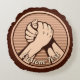 Bronzen ronde medaille met twee handen in arm worstelen. Aangepaste achtergrondkleur. Aangepaste tekst aan beide zijden.