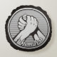 Zilveren ronde medaille met twee handen in arm worstelen. Aangepaste achtergrondkleur. Aangepaste tekst aan beide zijden.