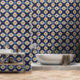 Art Deco Blauw en Goud Bloempatroon Homedecor Behang